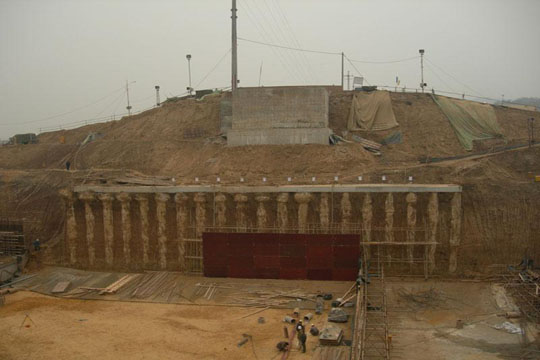 我院施工處針對(duì)蚌埠閘擴(kuò)建船閘承壓水截排滲技術(shù)、高土坡支護(hù)措施及超大尺寸閘門(mén)制安方案等關(guān)鍵技術(shù)進(jìn)行專(zhuān)題研究工作。從機(jī)理上進(jìn)一步精細(xì)化研究不同截排措施對(duì)特定范圍滲流場(chǎng)的變化影響,研究實(shí)際層狀土層各方向滲流特征差異,分析多種截滲和排水方式及滲流變化特征,提出同時(shí)截滲與疏排結(jié)合治理的新思路。在不同部位精準(zhǔn)布置截滲或排水措施,老船閘運(yùn)行造成水位往復(fù)變化時(shí),能夠準(zhǔn)確控制地下水位變化。采用有效支護(hù)措施,在保證狹小場(chǎng)地高土坡開(kāi)挖的滲流穩(wěn)定的同時(shí)維持對(duì)老船閘地下水位控制以及可能對(duì)老船閘沉降影響,保證緊鄰的老船閘正常安全運(yùn)行。圓滿(mǎn)地解決了降水控制、滲流穩(wěn)定和高土坡支護(hù)等一系列難題。